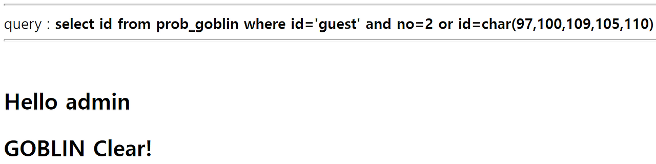 필터링 우회를 위해 char()을 이용하여 파라미터를 ASCII코드로 전달해준다.