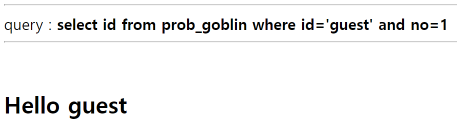 $query = "select id from prob_goblin where id='guest' and no={$_GET[no]}"