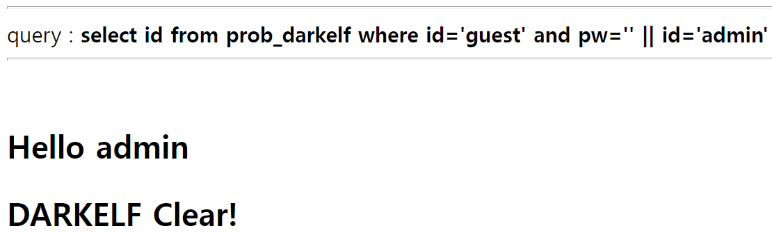 따라서, 주입해야할 쿼리문인 ' or id='admin 에 우회 문자를 적용한 최종 쿼리문은 다음과 같다.